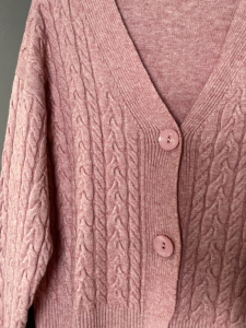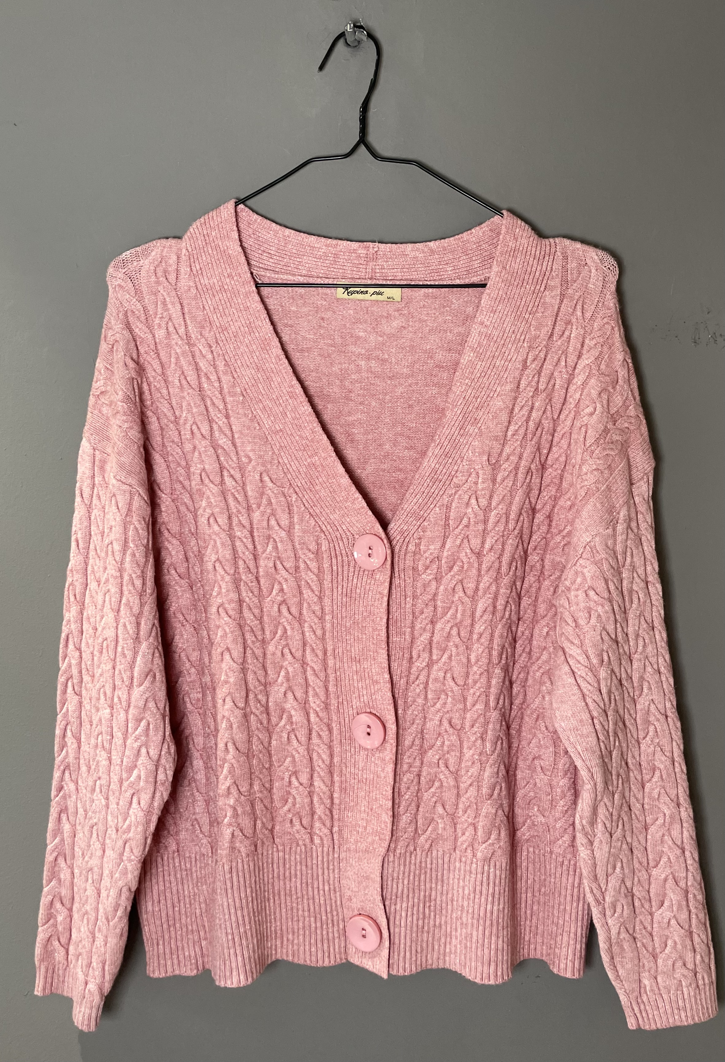 Ζακέτα oversized με κουμπί και ανάγλυφη πλέξη. Μήκος ως τους γλουτούς.