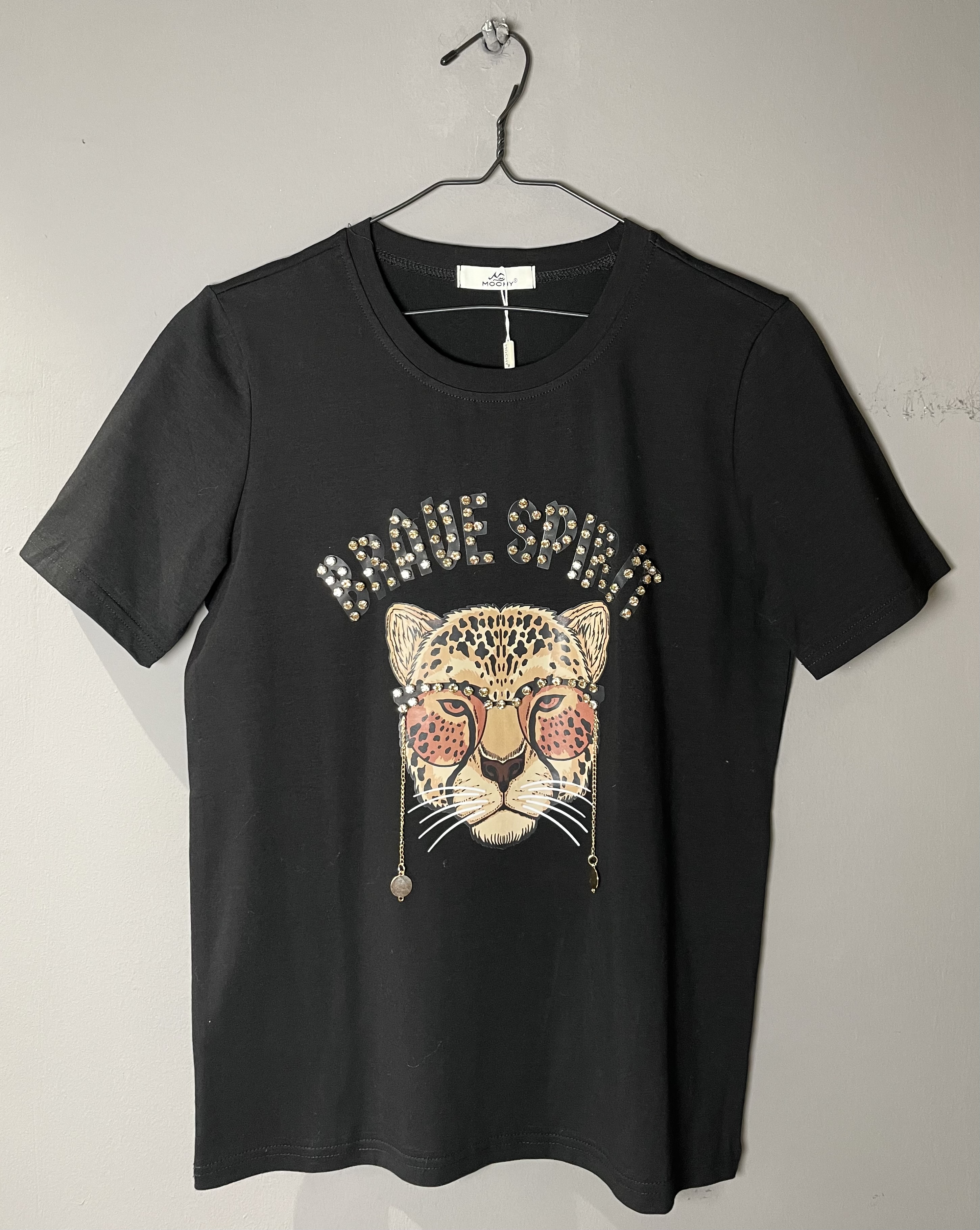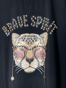 Mαύρο t-shirt με στάμπα και μεταλλικά στοιχεία. Κανονική γραμμή