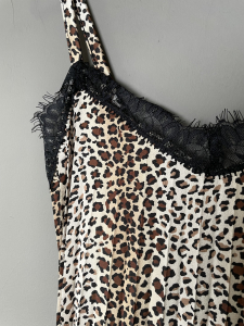 Φόρεμα πλισέ λεοπάρ με δαντέλα στο μπούστο. Άνετη γραμμή