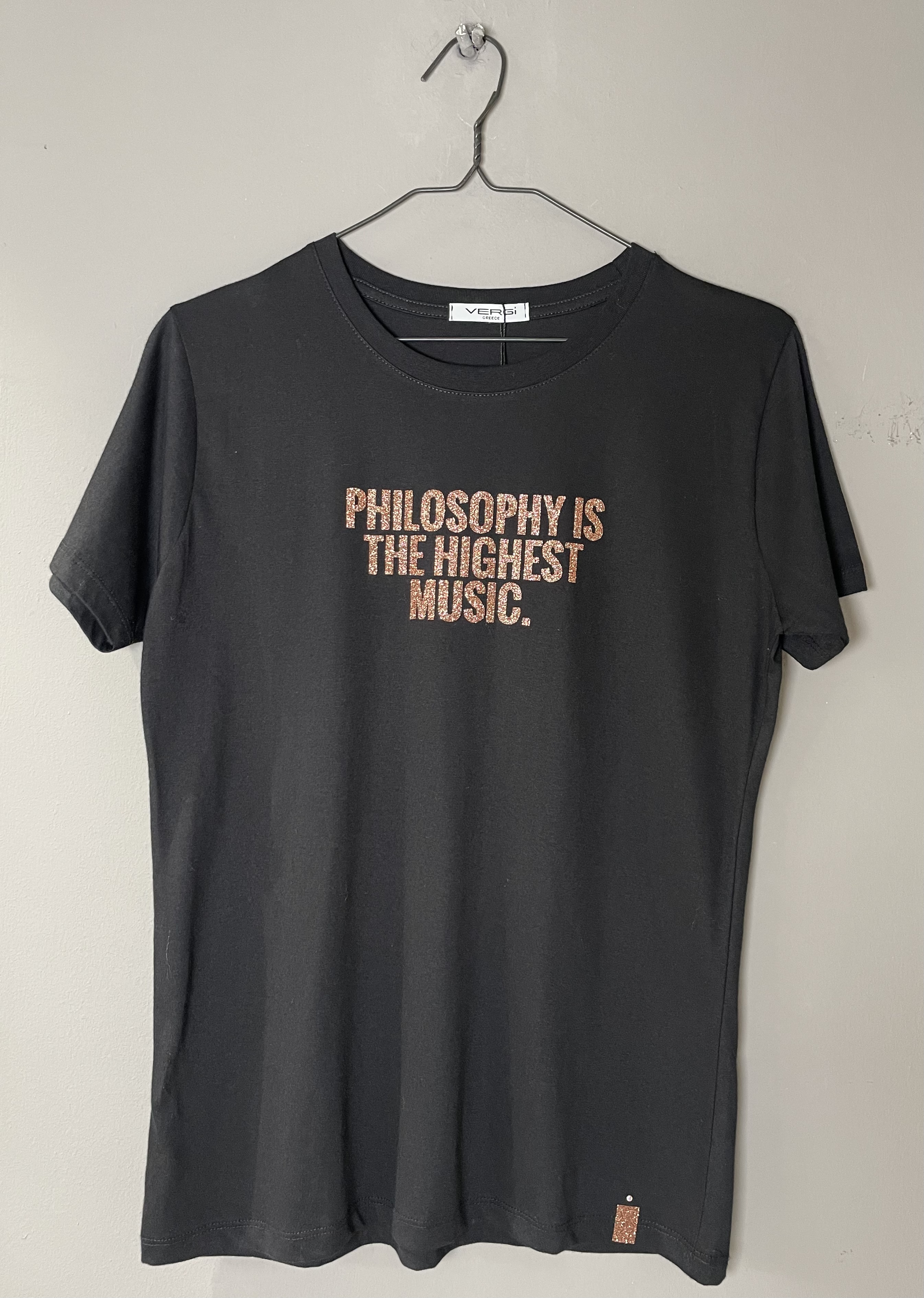 Μαύρο t-shirt μεε κανονική γραμμή και στρογγυλή λαιμόκοψη.