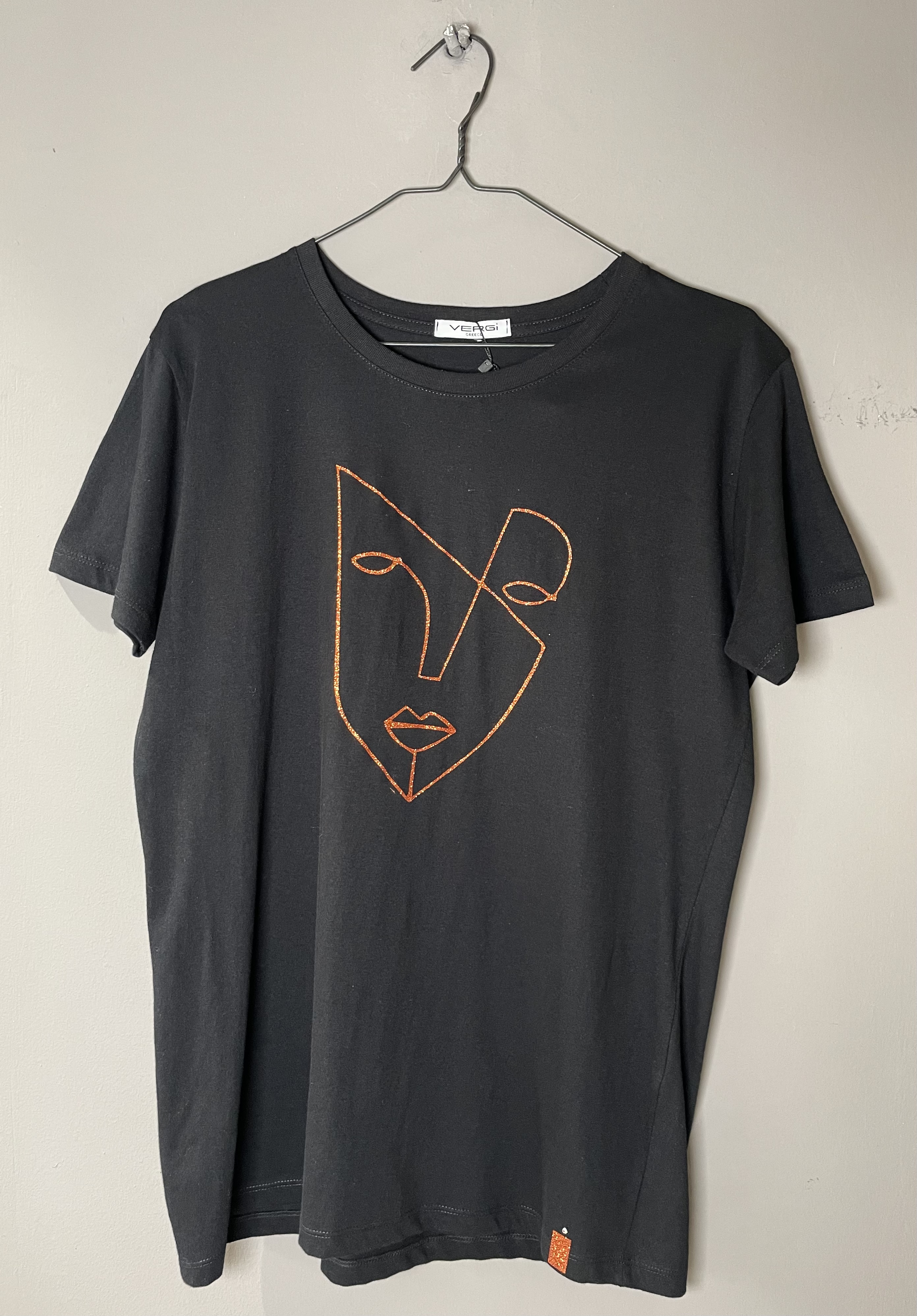 Mαύρο t-shirt με κανονική γραμμή και στρογγυλή λαιμόκοψη.